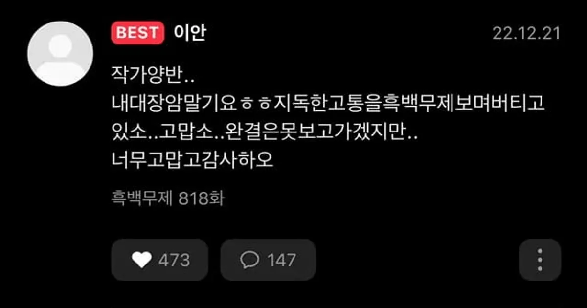 대장암 말기 환자가 작성했던 웹소설 댓글 + 소설 완결 후기