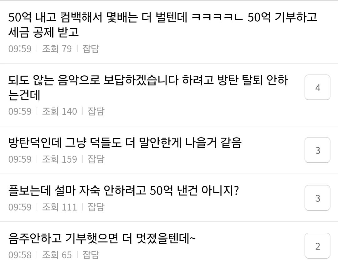 오늘 50억 기부 + 민윤기 의료센터 설립 기사 뜨자마자